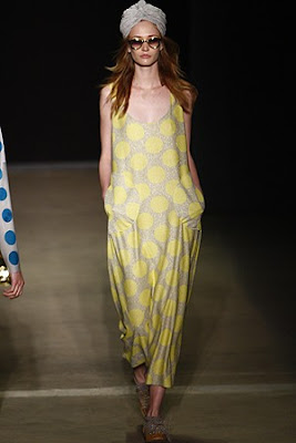 Poucas peças desse desfile me agradaram, acho essa estampa de bolinhas tão over.